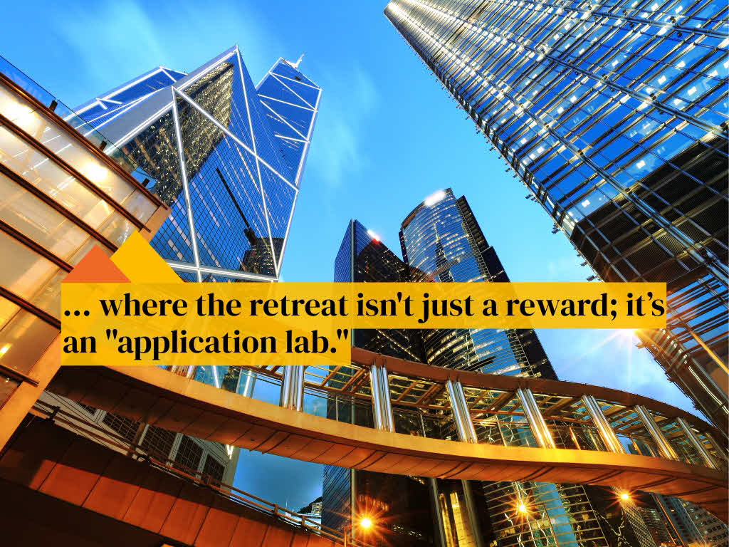 Frontline retreats may also be considered; where the travel component acts as a powerful motivator and a “real-world” application lab. This can take shape in the form of a dedicated experience designed to foster continuous learning, growth, and future-ready capabilities. This anchors new knowledge in practice, blending professional reskilling with motivational travel experiences. Going on for example such a three-day retreat isn’t just a reward; it’s an ‘application lab’.